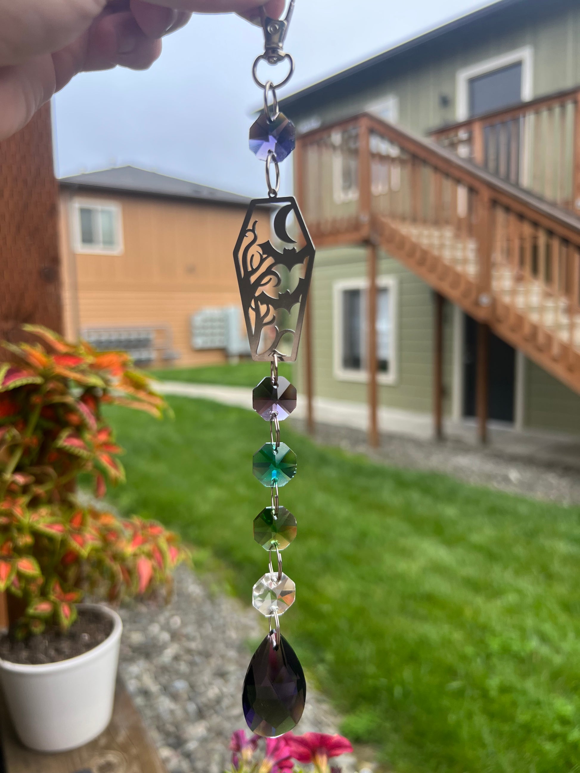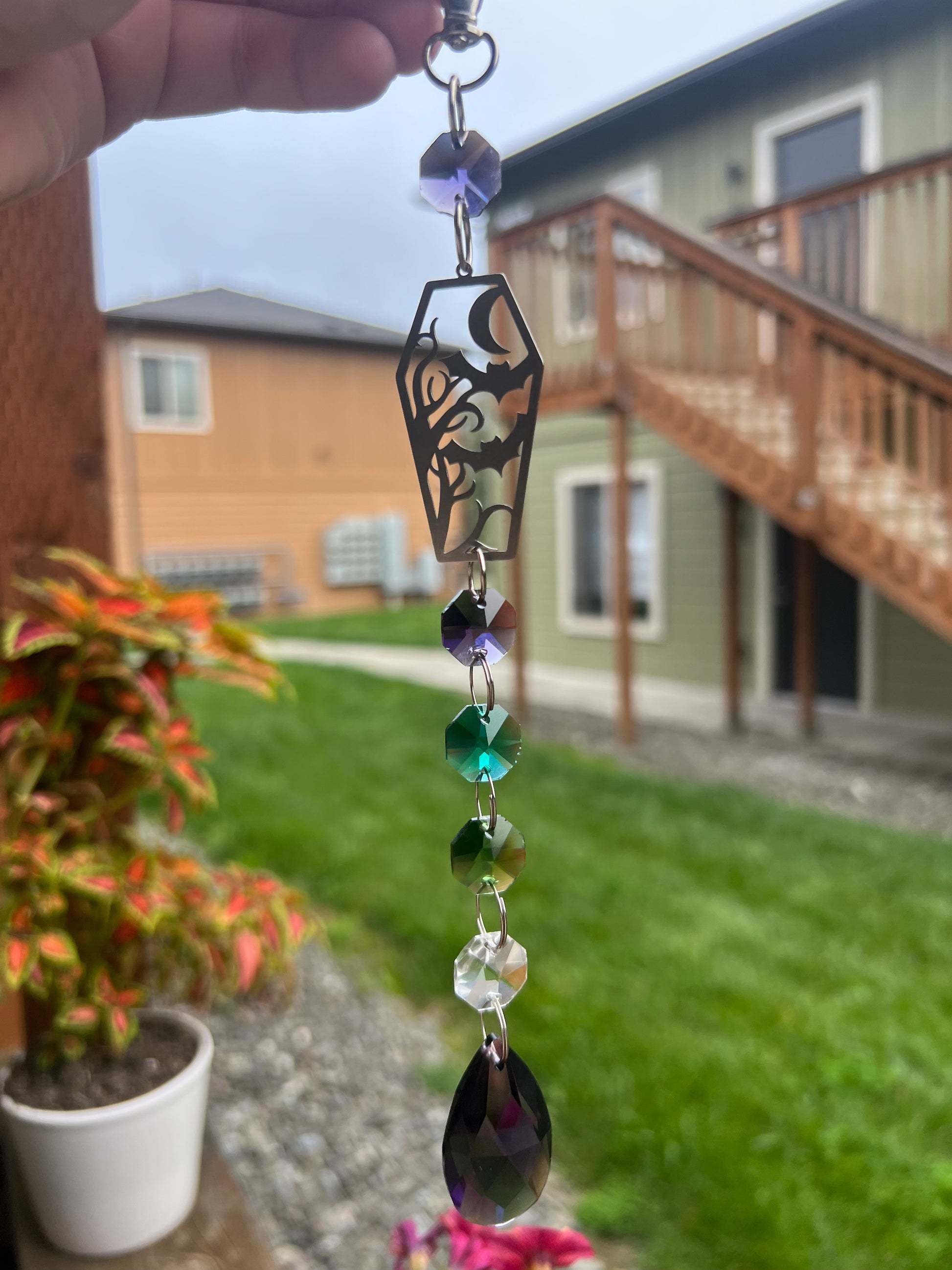 Bat coffin charm suncatcher paired with various suncatcher beads
