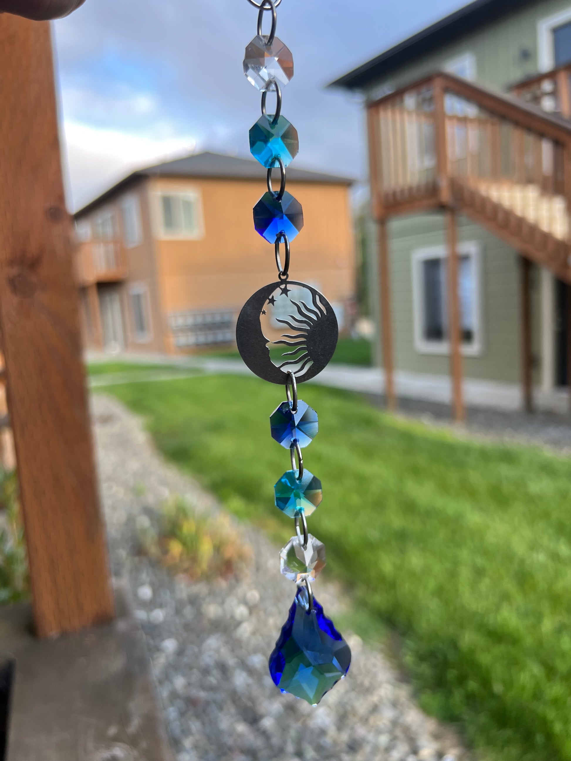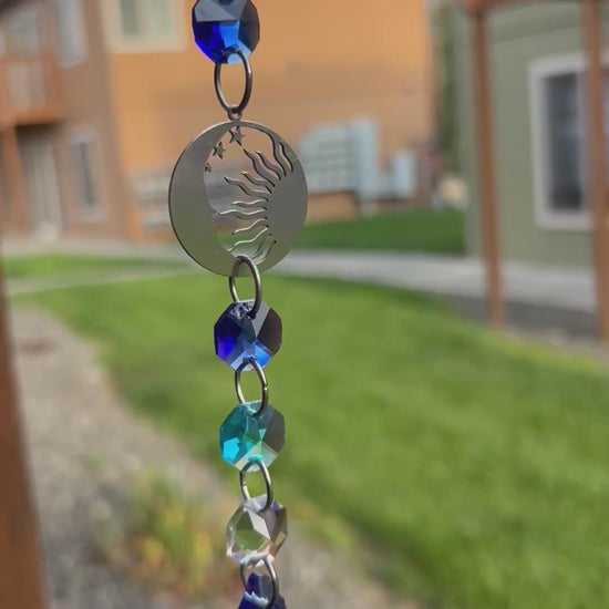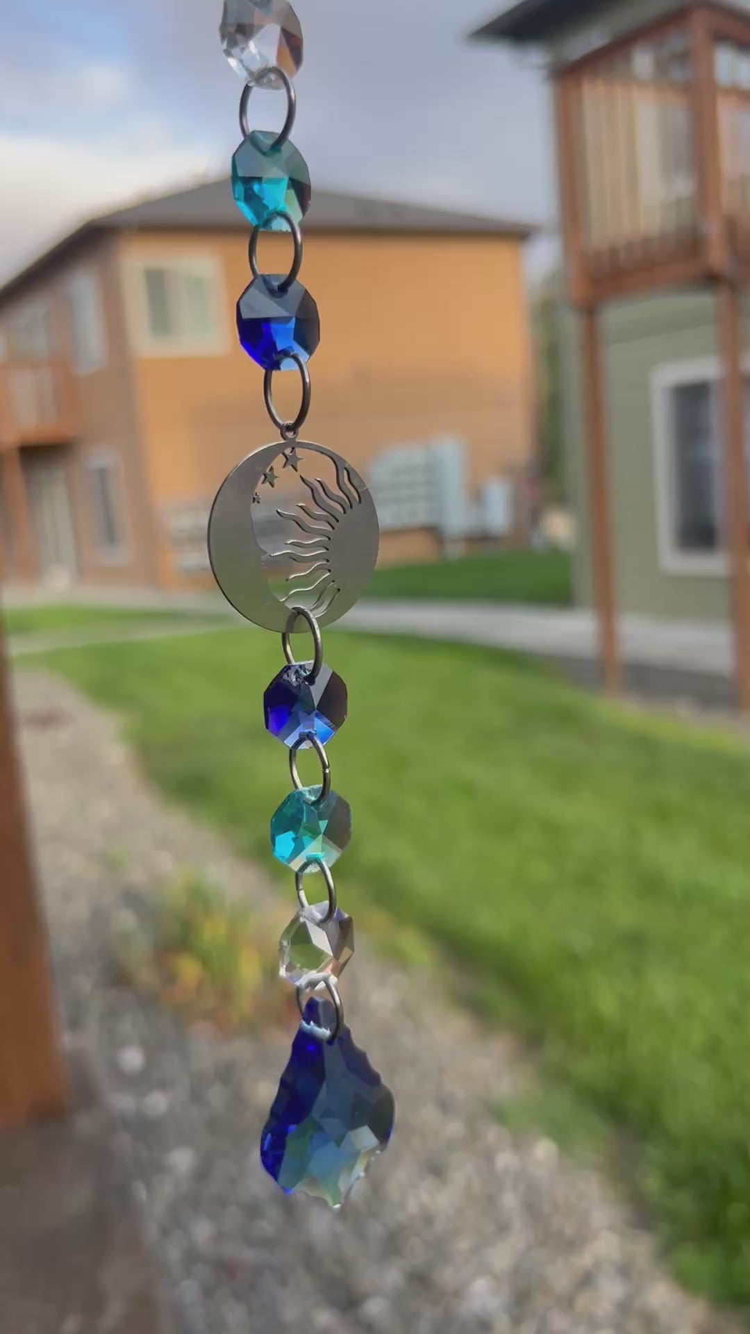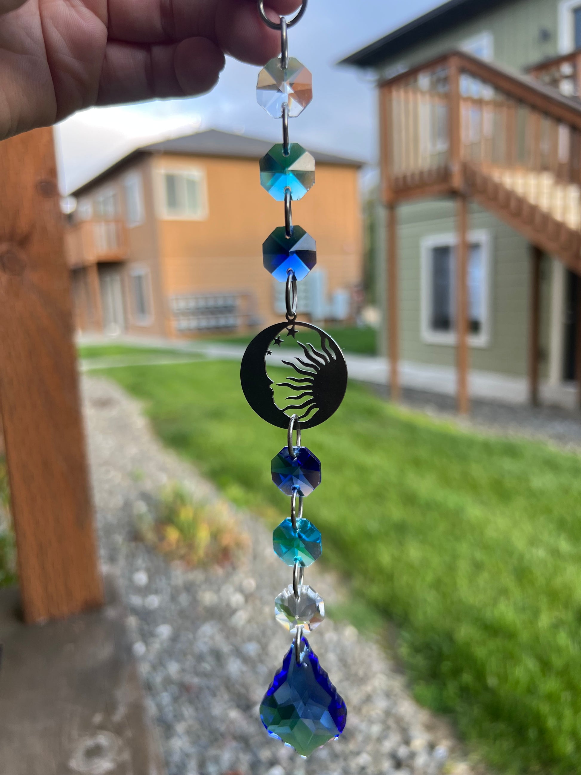 Sun and Moon suncatcher, paired with various colored prism beads and silver sun & moon charm
