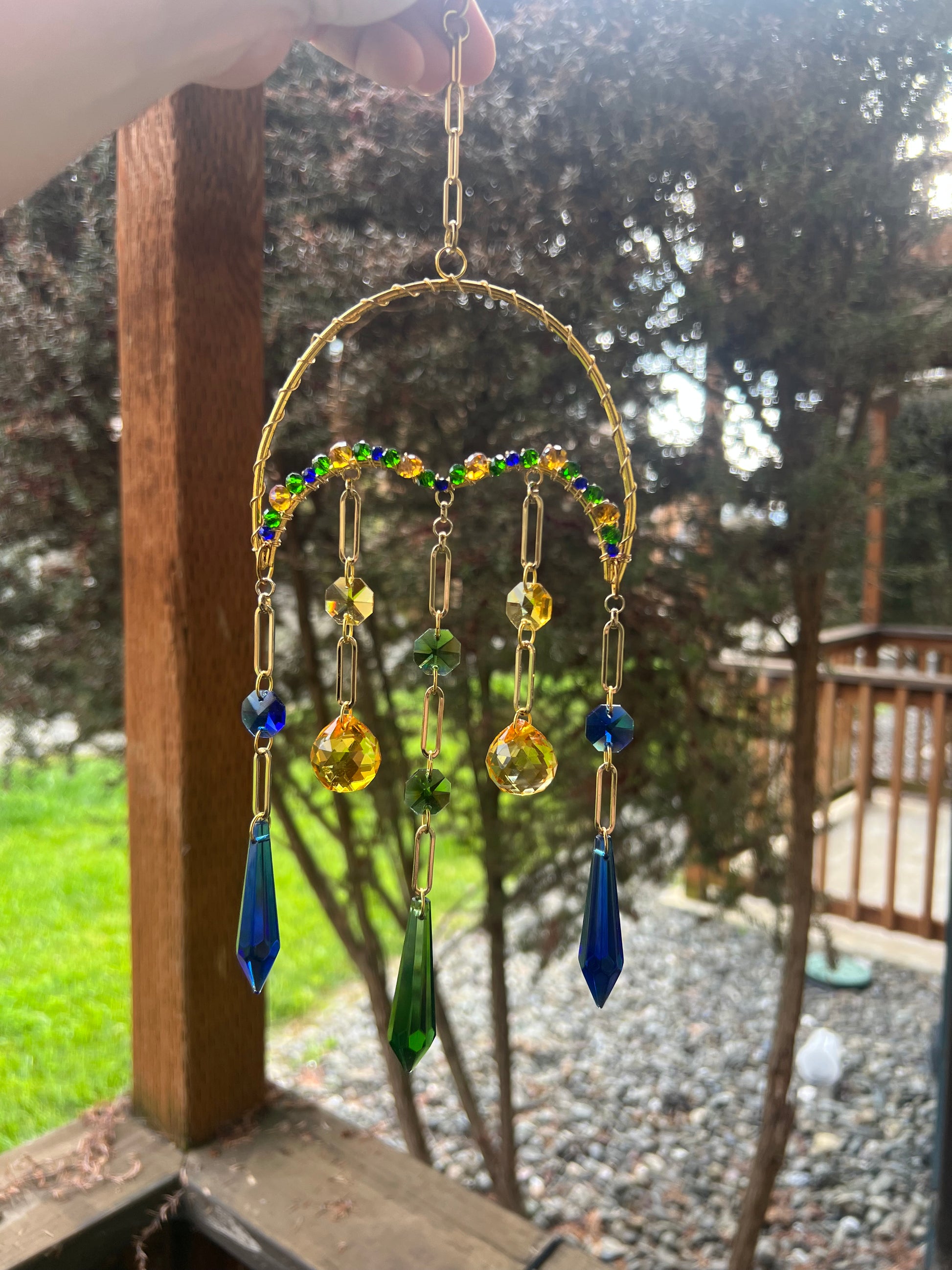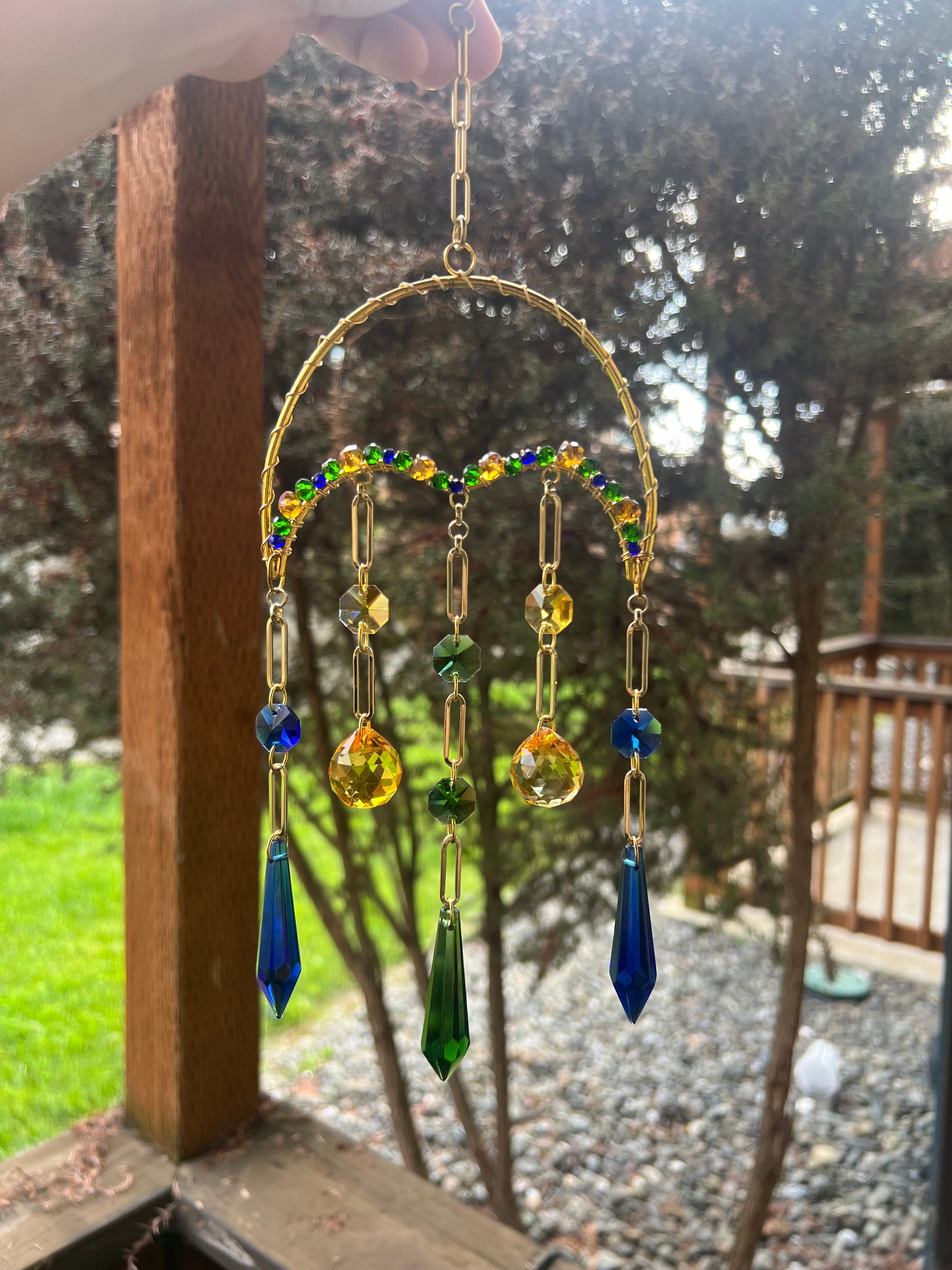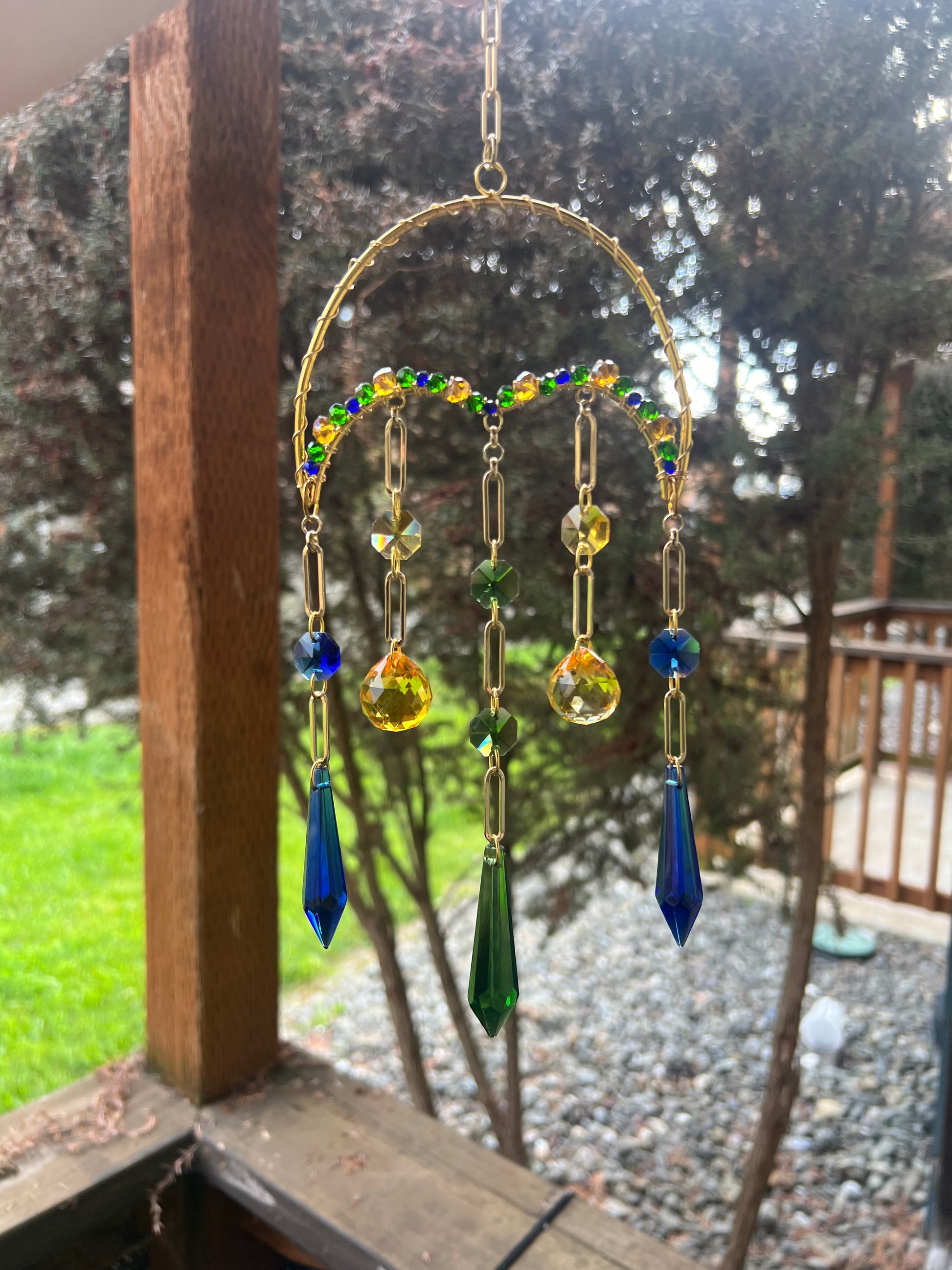Jellyfish Suncatcher, wrapped with gold plated wire and paired with various colored suncatcher beads, comes with hanging hook