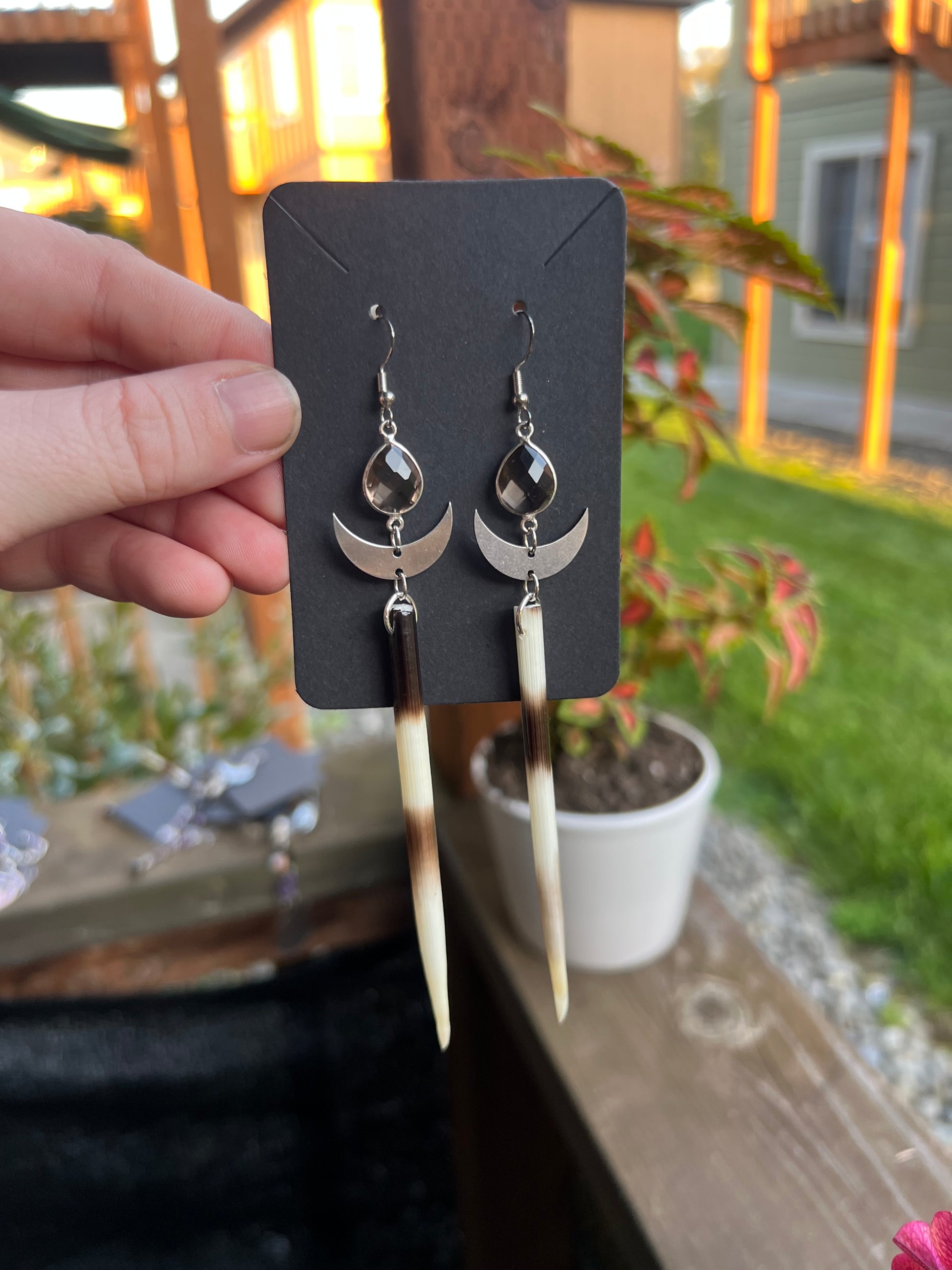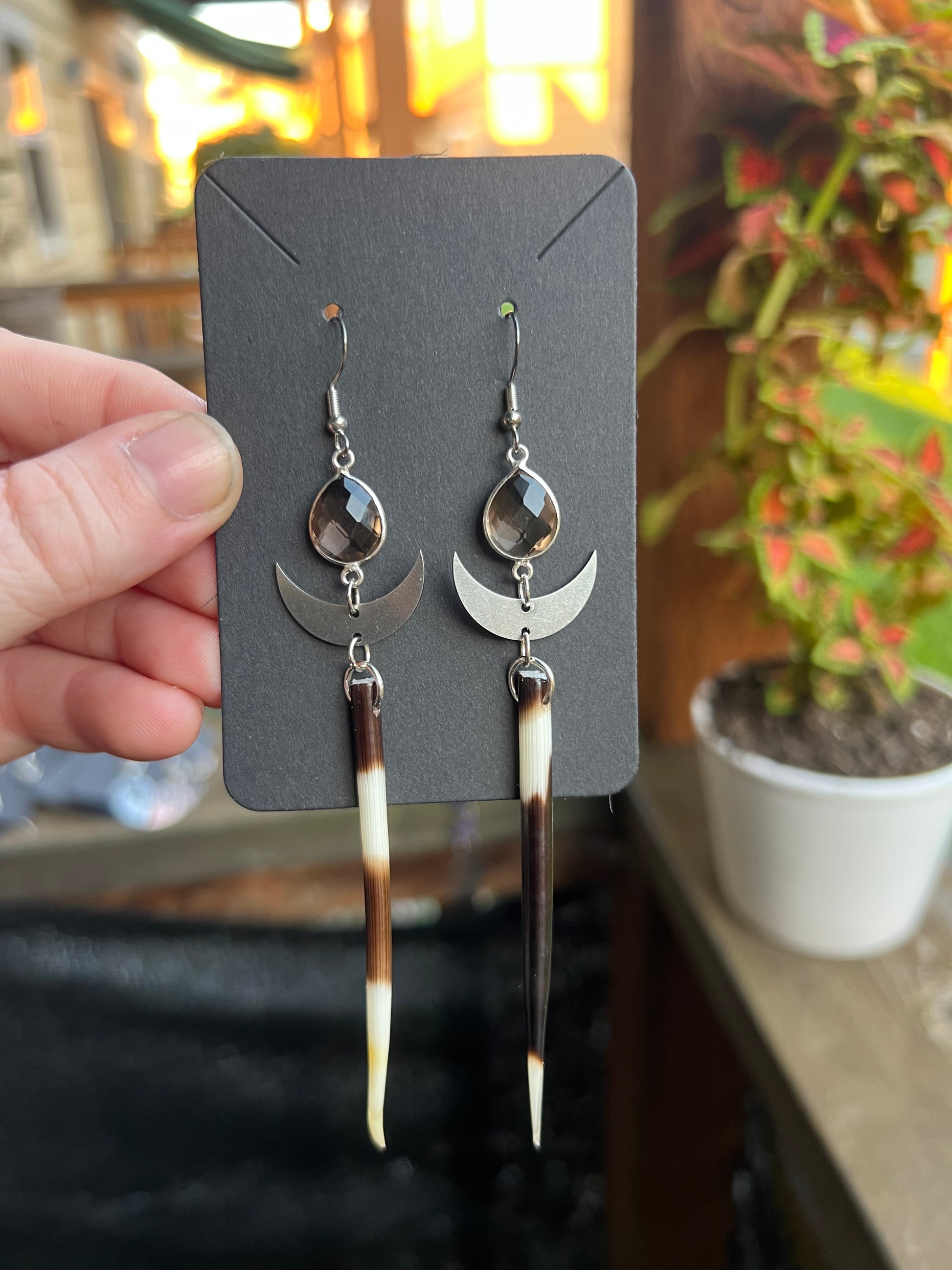Real porcupine quill earrings paired with Smoky Quartz, .925 hooks, lightweight