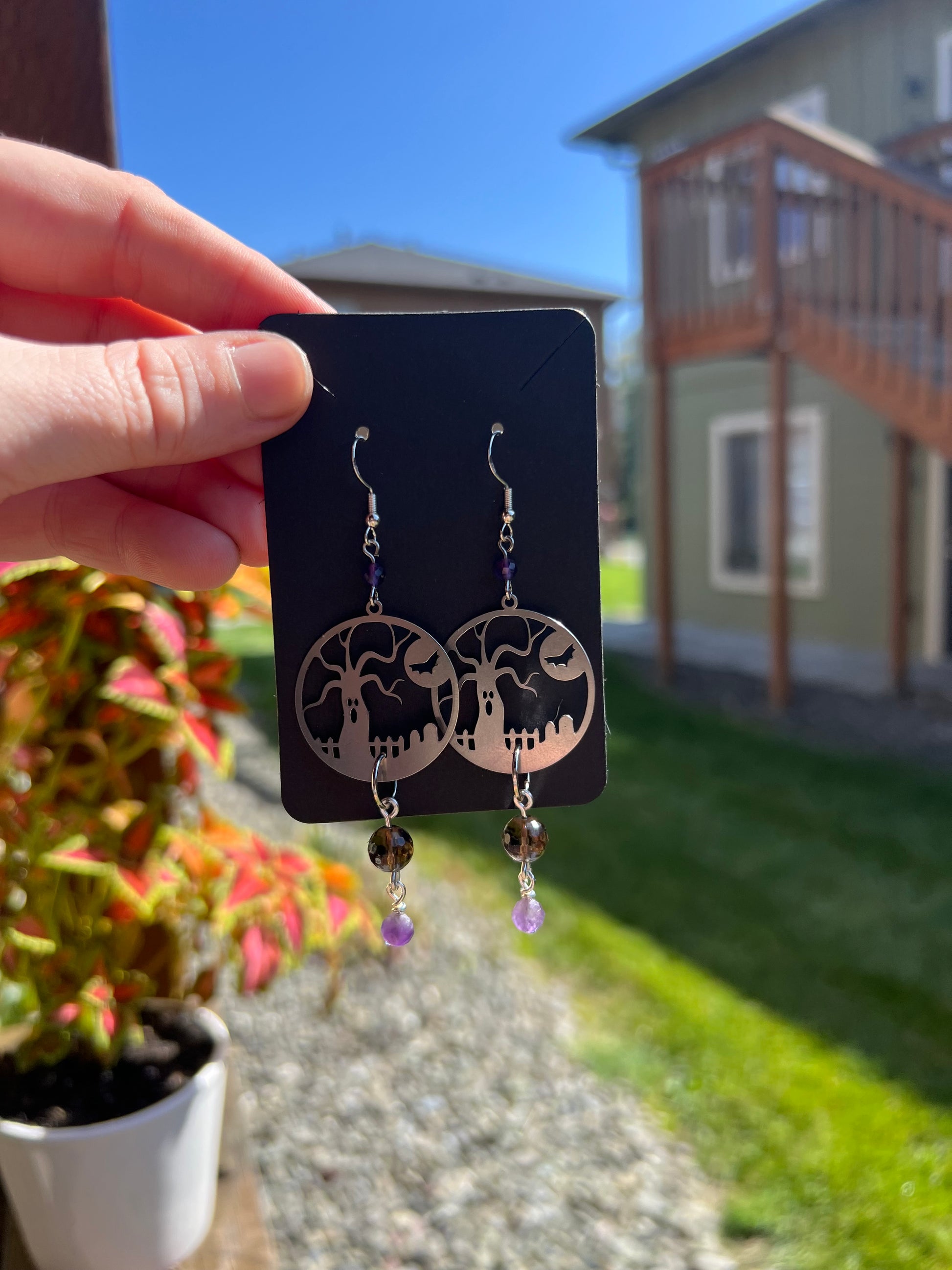 Halloween Charm earrings paired with Smoky Quartz and Amethyst, .925 hooks, medium weight